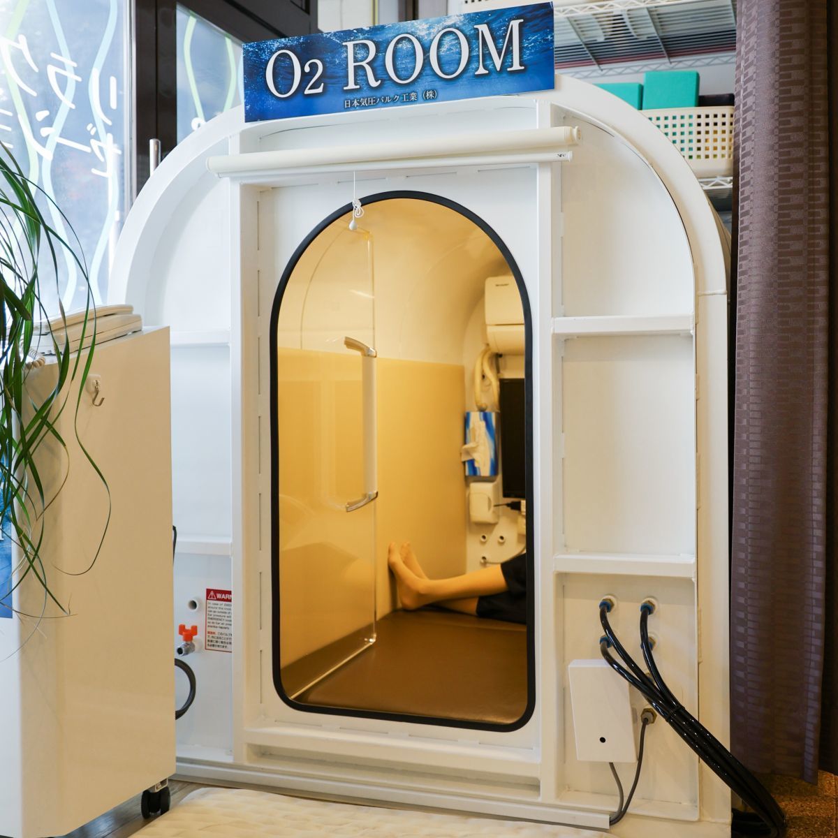 高気圧酸素ルームで通常よりも多くの酸素を体の隅々まで取り込み細胞を活性化させます。酸素濃縮器を付属。