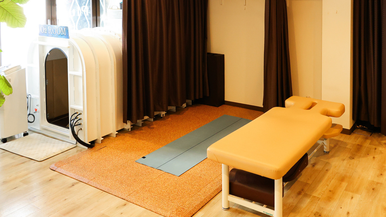 いしづか接骨院Plus(プラス)リラクゼーションの酸素ルームは、酸素濃縮器を備えた空間で、より多くの酸素を取り込みながら、身体を休めて整えていきます。