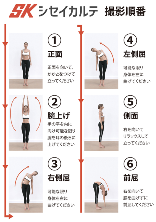 6枚の全身写真を撮るだけで姿勢分析が完了!